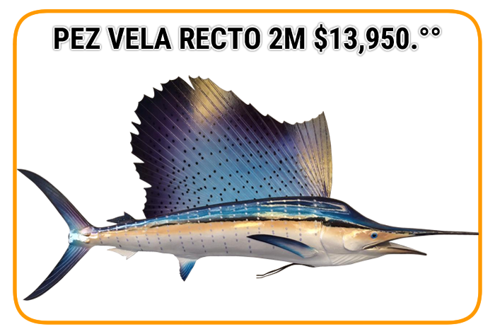 Réplicas de especies reales de nuestra Región: Marlín, Pez Vela, Dorado, Tiburón, Pez Globo, Pez Martillo, Estrellas, Caracoles, Almejas, Ostras, Mandíbulas y variadas Artesanías de Mar.